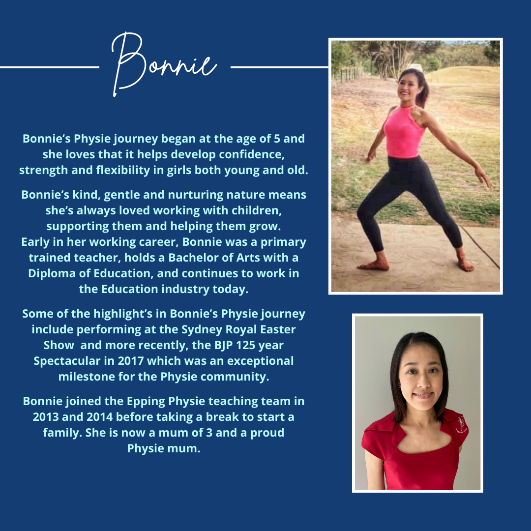 Established in 2007, Epping Physie is proud to be affiliated with the Bjelke Petersen (BJP) Physical Culture Association. BJP has proudly inspired generations of Australians to exercise both body and mind through this remarkable sport. With the national BJP syllabus, physie aims to encourage girls’ coordination, self awareness, posture and self esteem in a friendly environment. At Epping, we embody the physie values of ‘fun, friendship and fitness’.